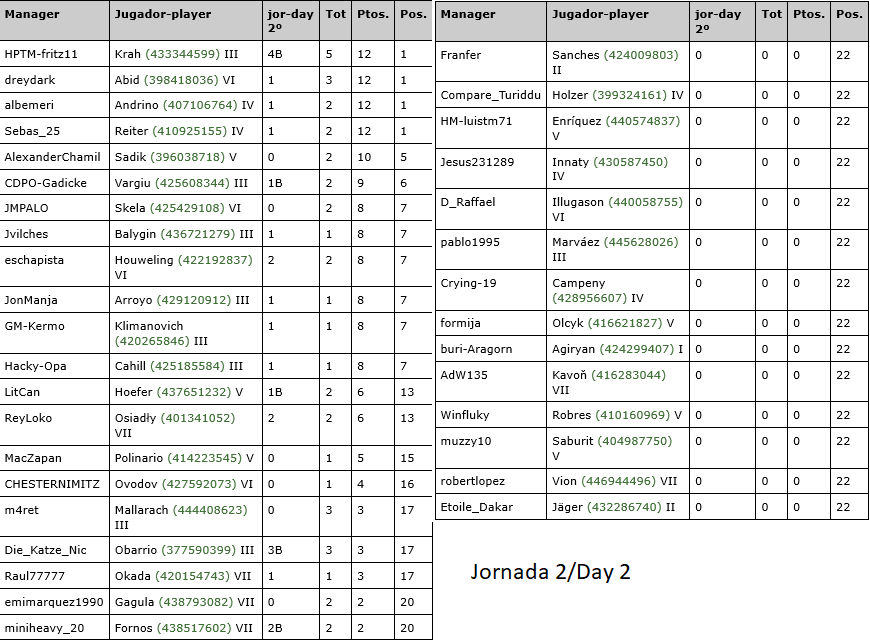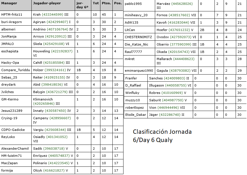 -Every day our organizer Crying-19 will publish the classification. From the publication of the classification, all the participants of the game will have 72 hours to report any error in the classification. If after that time someone reports a complaint, it will not be taken into account. The ranking will be placed not only in the blog but also in the forums of the Federation: La Taberna de Pablito within Hattrick.
