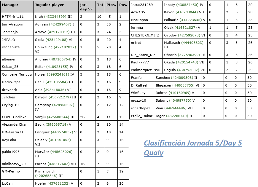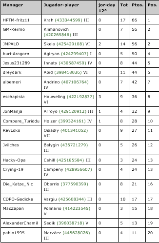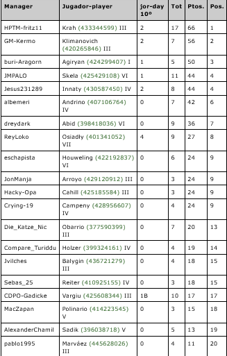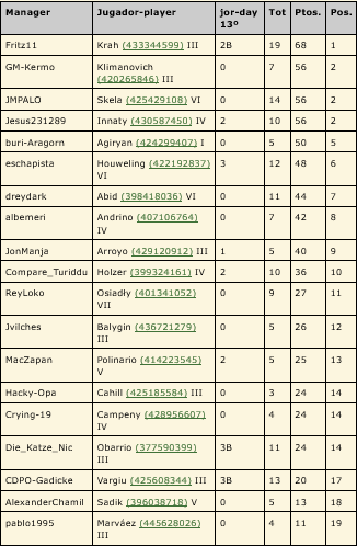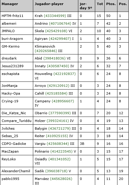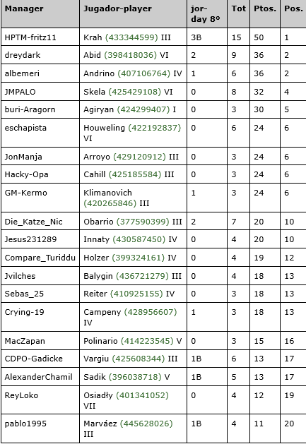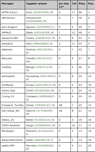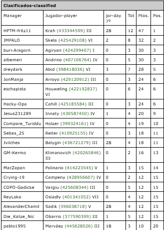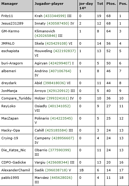 Day 7 of the league is here! Only the first 20 classified will still be participating in the Pichichi (XIII) game. The rest will be knocked out.